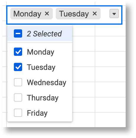 Haz clic en el icono de la flecha apuntando hacia abajo para mostrar la lista desplegable (como se muestra a continuación). .. Para agregar una etiqueta al control, escriba el texto por encima o a la izquierda del control, seguido por dos.